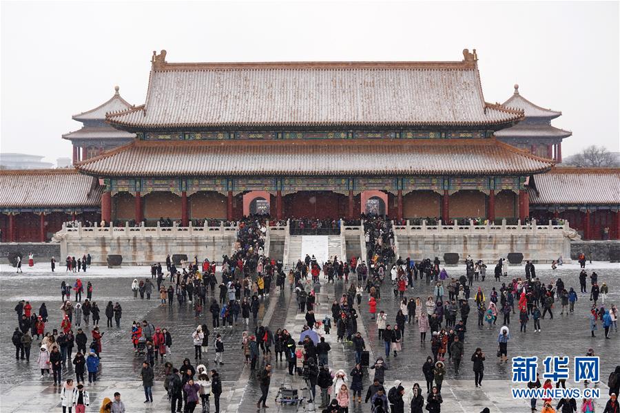 2月14日,游客在雪中游覽北京故宮。 當日,北京降雪,大批游人來到故宮游覽賞雪。 新華社記者 鞠煥宗 攝