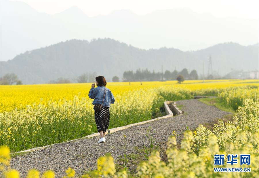 3月19日,游人在下涯鎮(zhèn)油菜花海中游玩。近日,浙江省建德市下涯鎮(zhèn)油菜花盛開(kāi),吸引不少游客前來(lái)踏春。 新華社記者翁忻旸攝