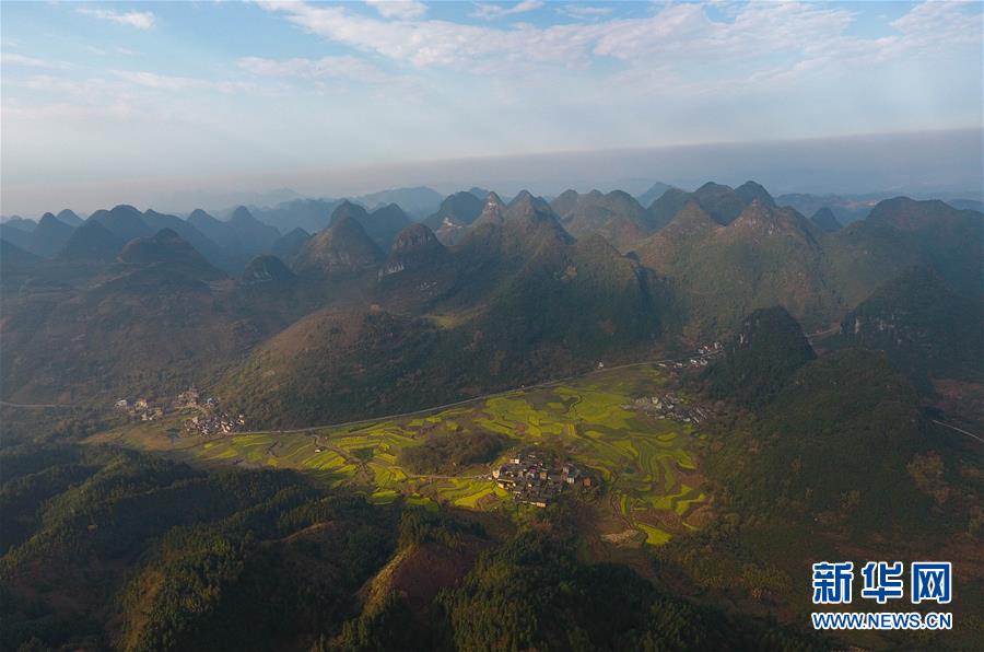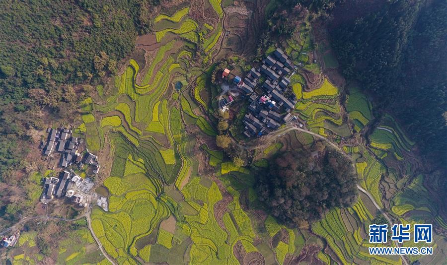 3月20日在貴州錦屏縣敦寨鎮(zhèn)拍攝的春景(無(wú)人機(jī)拍攝)。春分將至,貴州各地成片的油菜花漸次綻放,如同金色的地毯鋪上云貴高原。 新華社記者 歐東衢 攝