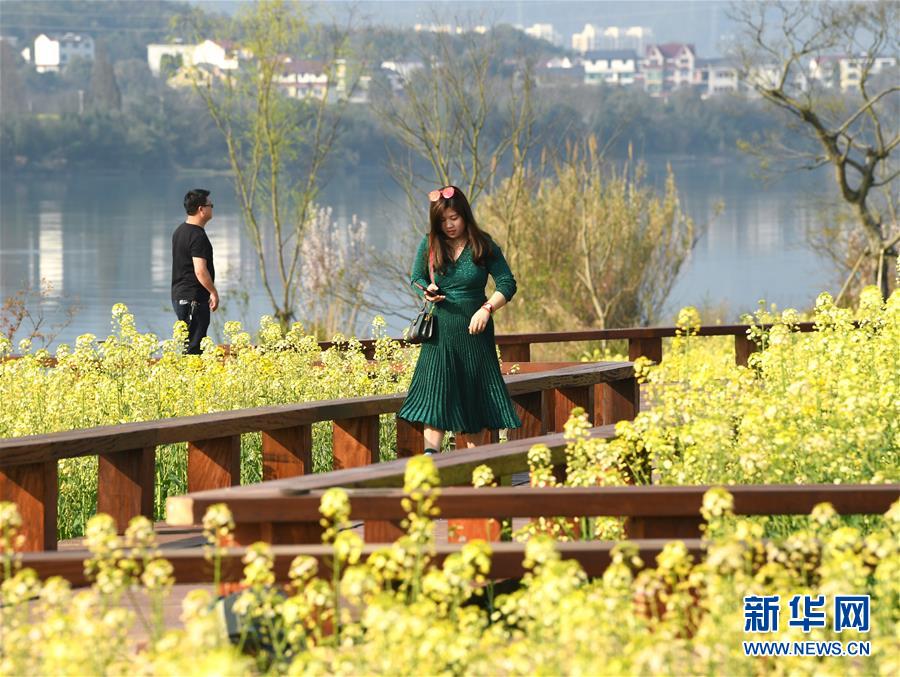 3月19日,游人在下涯鎮(zhèn)油菜花海中游玩。近日,浙江省建德市下涯鎮(zhèn)油菜花盛開,吸引不少游客前來(lái)踏春。 新華社記者翁忻旸攝
