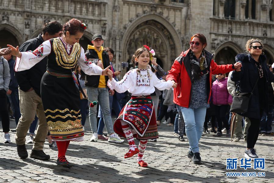 4月28日,在比利時(shí)布魯塞爾大廣場,表演者與游客一同跳舞。 當(dāng)日,來自歐洲多個(gè)國家的表演者在比利時(shí)布魯塞爾大廣場載歌載舞,慶祝為期五天的2019年巴爾干文化藝術(shù)節(jié)圓滿落幕。該文化藝術(shù)節(jié)旨在用音樂、舞蹈、文學(xué)、街頭藝術(shù)等方式向公眾展現(xiàn)東南歐巴爾干半島地區(qū)的民族文化風(fēng)情。 新華社記者鄭煥松攝