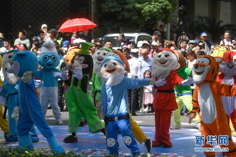 5月4日,演員裝扮成各種動漫形象在巡游隊伍中表演。當(dāng)日,第十五屆中國國際動漫節(jié)彩車巡游活動在浙江杭州南宋御街中北創(chuàng)意街區(qū)舉行。巡游表演隊伍約500米長,由4輛大型動漫彩車、1輛小火車及400多名演員組成。新華社記者 黃宗治 攝