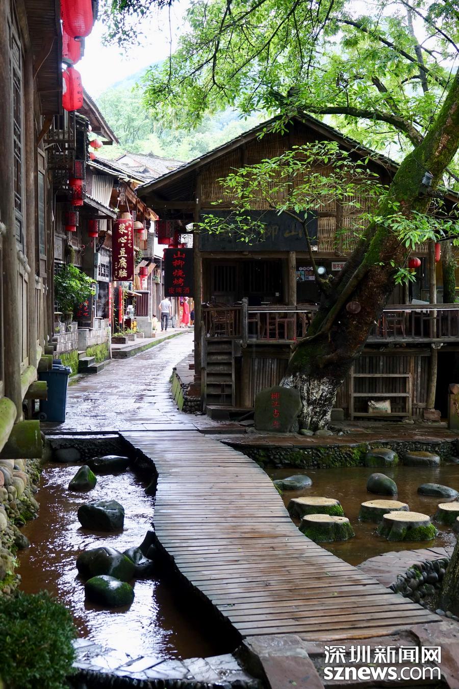 古鎮(zhèn)背靠峨眉、瓦屋仙山,楊村河、花溪河擁鎮(zhèn)而過(guò)。這里有川西風(fēng)情吊腳樓、訪古尋悠水碼頭、親水臨河古棧道、百年民居匯老街等特色景觀。李 仁奇 攝