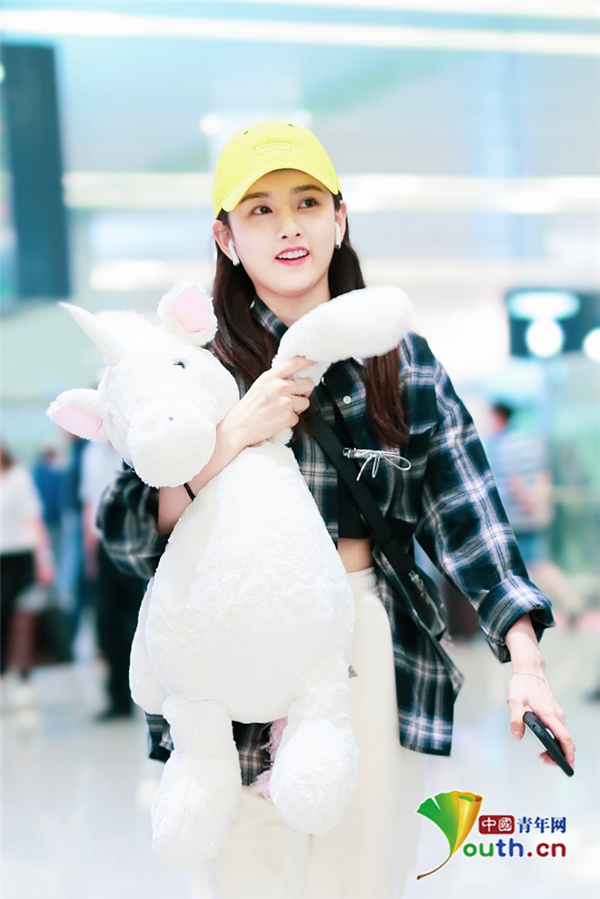 2019年5月12日,北京,宋祖兒現(xiàn)身機(jī)場(chǎng)。她穿格子襯衫戴小黃帽揮手大步走,元?dú)馍倥盍M(mǎn)滿(mǎn),抱玩偶變身獨(dú)角獸女孩童趣十足超可愛(ài)。