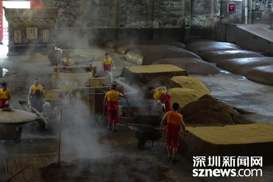 瀘州老窖酒是以泥窖為發(fā)酵容器,中高溫曲為產(chǎn)酒、生香劑,高梁等糧谷為釀酒原料,開放式操作生產(chǎn),多菌密閉共酵,續(xù)糟配料循環(huán),常壓固態(tài)甑桶蒸餾、精心陳釀勾兌等工藝釀制的白酒,以己酸乙醇為主體香味物質(zhì)?!盀o州老窖酒傳統(tǒng)釀造技藝”由大曲制造、原酒釀造、原酒陳釀、勾兌嘗評(píng)等多方面的技藝。李仁奇 攝