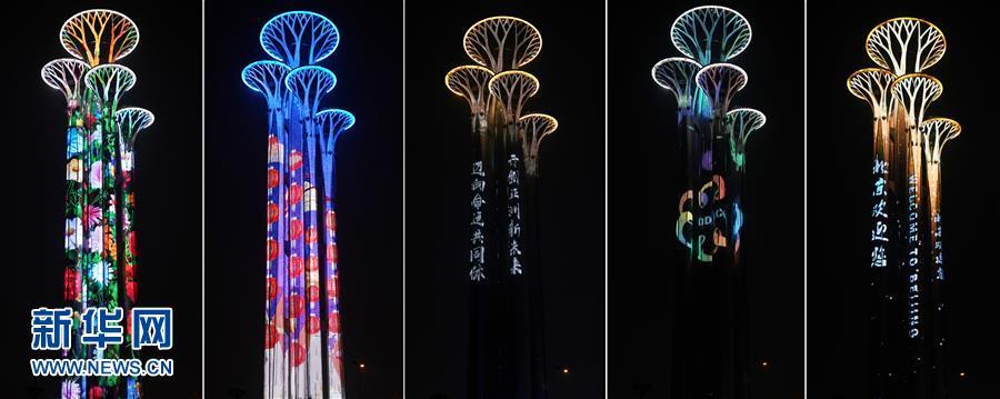 奧林匹克塔上演“空間光影秀”(拼版照片,5月14日攝)。 當(dāng)晚,一場“空間光影秀”在北京上演。 新華社記者 鞠煥宗 攝