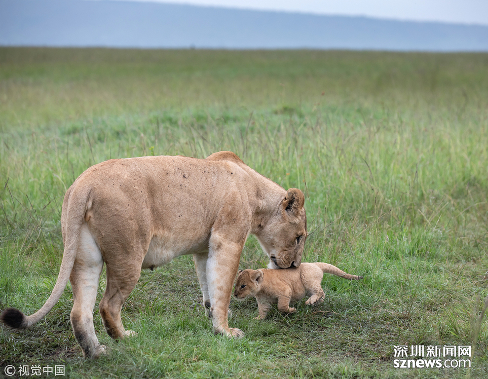 英國野生動(dòng)物攝影師Paul Goldstein在肯尼亞的馬賽馬拉拍到了一頭小獅子被媽媽教訓(xùn)的場(chǎng)面。