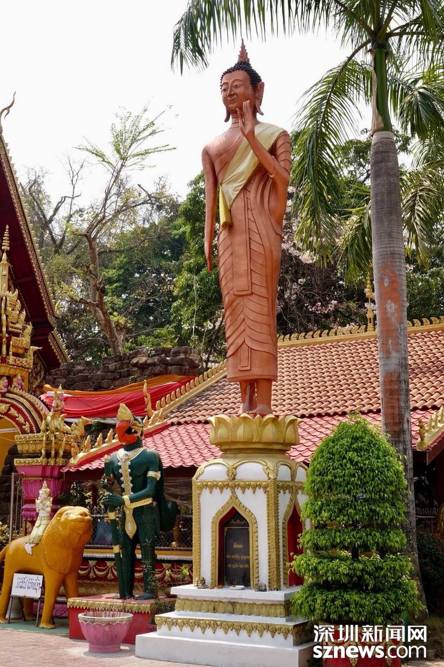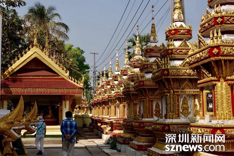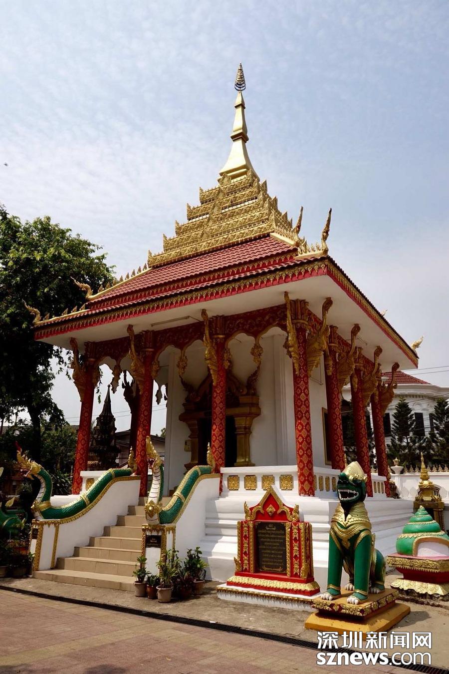 西蒙寺是萬象香火最旺盛的一個(gè)寺廟,又稱神城寺,每天有很多當(dāng)?shù)厝思坝慰蛠磉@里祈福,尤其受泰國(guó)游客鐘愛。李仁奇 攝
