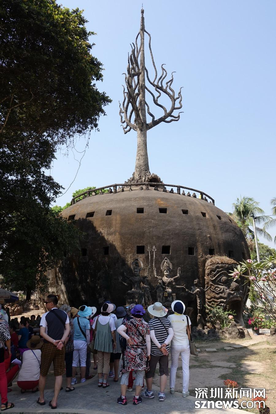 香昆寺實(shí)際上是一座佛像公園,位于萬象東南約 24 公里處,寺內(nèi)供奉的各種超凡脫俗的佛像和印度教雕像大多取材于宗教故事。圓形尖塔、塔頂有一座金佛坐鎮(zhèn)的詭異建筑寓意著地獄、人間和天堂。 李仁奇 攝