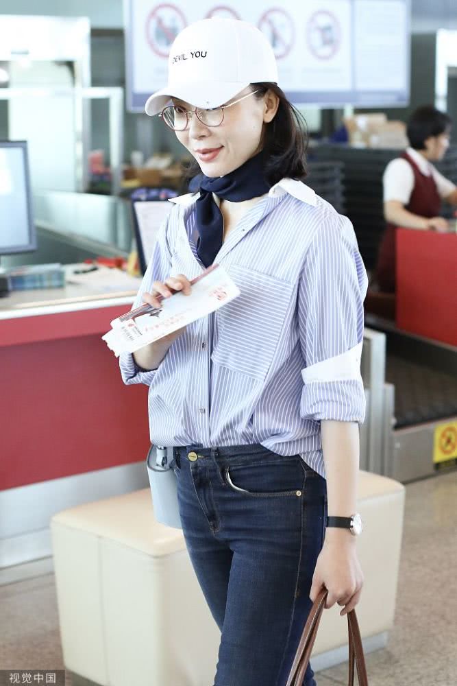 2019年6月30日,北京,陳數(shù)亮相機(jī)場(chǎng),她身穿條紋襯衫搭配藍(lán)色方巾完美詮釋知性美,簡(jiǎn)單造型非常耐看,已經(jīng)42歲的她皮膚也是亮白嫩滑,堪稱凍齡美人了。