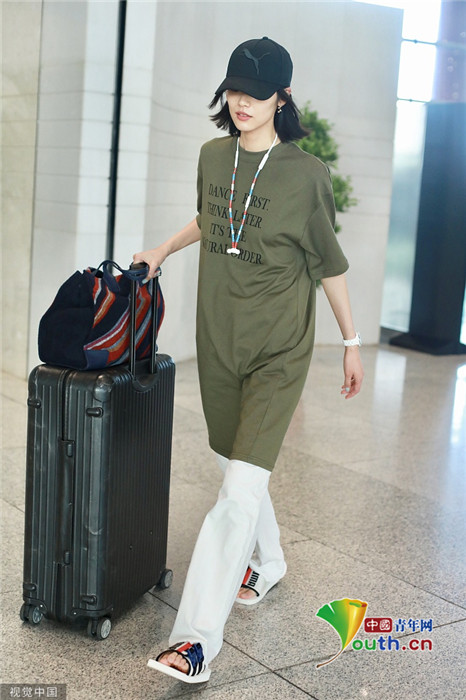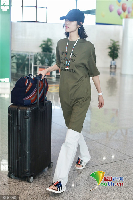 2019年7月23日,北京,劉雯現(xiàn)身機場。她頭戴棒球帽,身穿oversize上衣腳踩拖鞋,走慵懶隨性風(fēng),盡顯超模氣場,露出招牌笑容親切又有感染力。