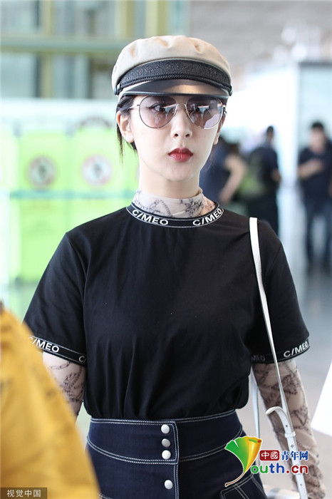 2019年7月25日,北京,楊紫現(xiàn)身機(jī)場(chǎng)。她穿黑色短T配牛仔裙變時(shí)髦女郎,戴報(bào)童帽架墨鏡”港風(fēng)女sir“即視感,人氣爆棚。