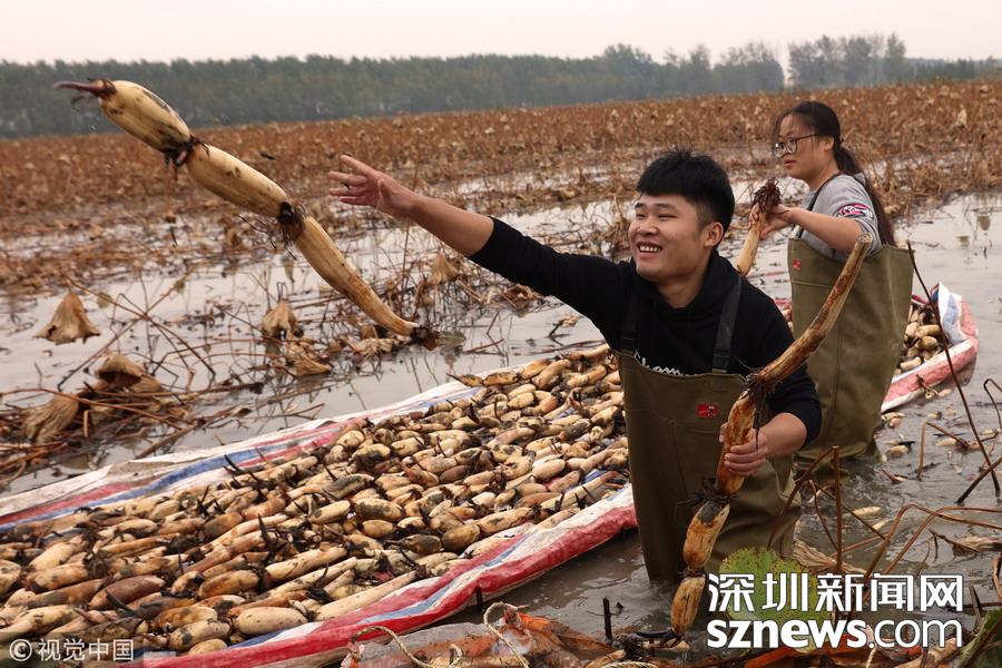 藕農(nóng)們抓緊采藕、清洗、包裝、運(yùn)輸,以供應(yīng)市場(chǎng)。