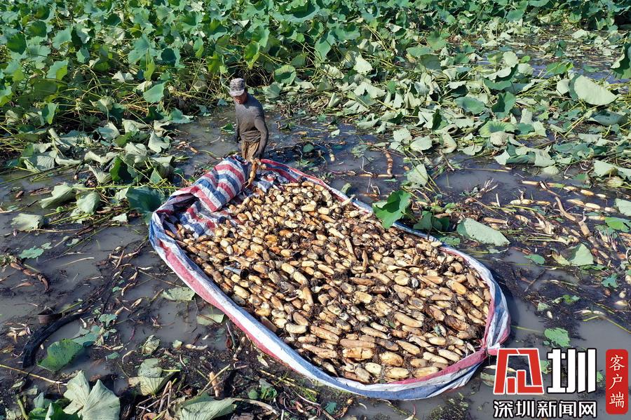相關(guān)鏈接 烈日下的采藕人 每天采摘千斤荷藕