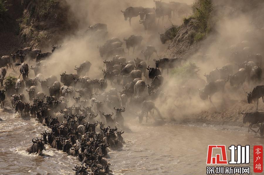 非洲角馬大軍集體遷徙,勇渡致命河流上演“生死時速”。