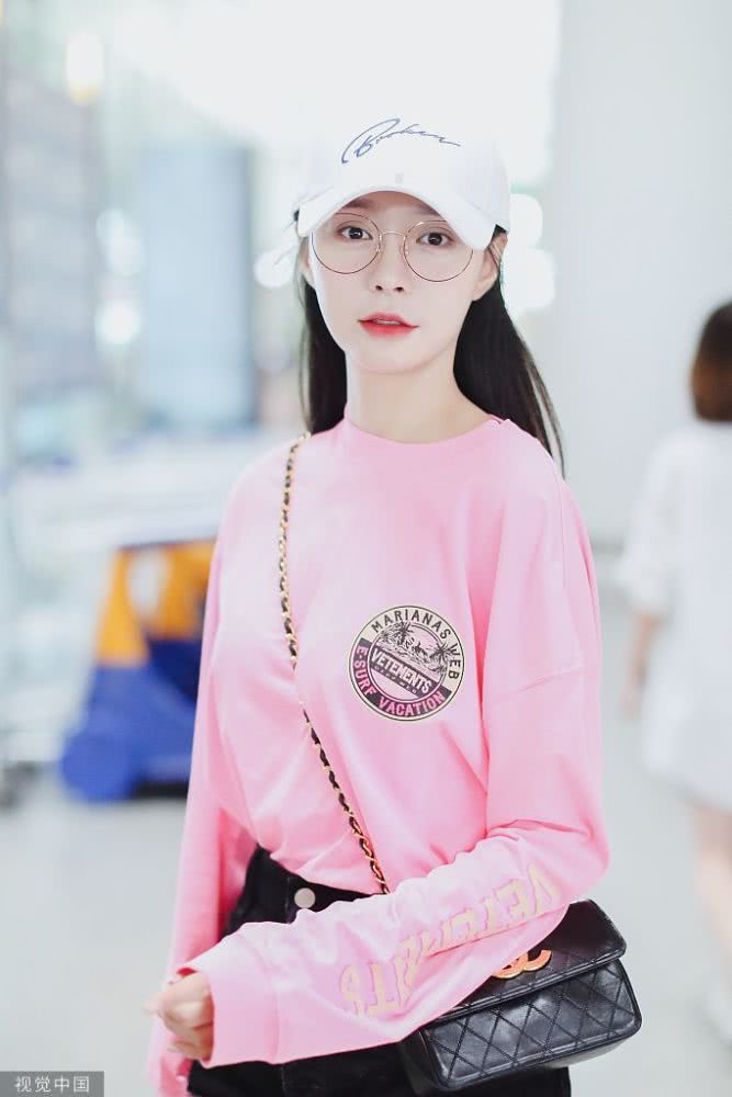 她戴著棒球帽身穿粉色衛(wèi)衣搭配熱褲,長腿纖細又白嫩。