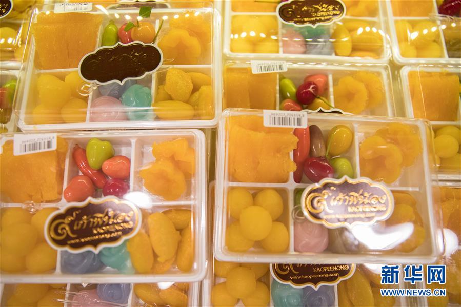 這是9月1日在泰國曼谷著名的“九姐妹甜點”店拍攝的泰國蛋黃花、蛋黃球和甜蛋絲等傳統(tǒng)甜點。新華社記者 張可任 攝