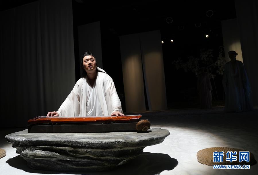 9月16日,演員在話劇《廣陵絕》中表演。 當(dāng)日,話劇《廣陵絕》在北京人藝實(shí)驗(yàn)劇場上演。該劇由中國戲劇家協(xié)會(huì)副主席王曉鷹任藝術(shù)指導(dǎo),龐貝編劇,通過魏晉名士嵇康與戰(zhàn)國刺客聶政的“同構(gòu)”拼貼,旨在展現(xiàn)中國傳統(tǒng)“道義”精神,反思生命與自由沖突,探討人的主體意識(shí)覺醒。 新華社記者 金良快 攝