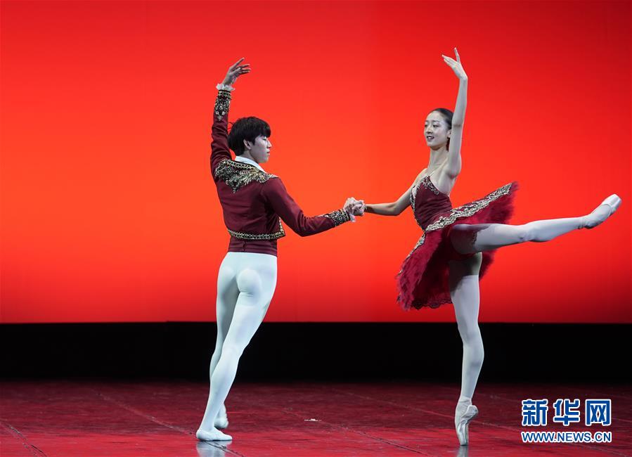 9月19日,演員邱蕓庭(右)、武思聰表演芭蕾舞《堂·吉訶德》選段。 新華社記者 金良快 攝