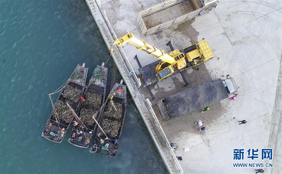 9月23日,滿載牡蠣的漁船返回碼頭(無人機拍攝)。新華社記者龍雷攝