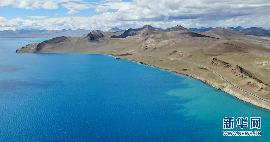 普姆雍錯湖緊挨著公路,是自駕游的理想目的地(9月19日無人機拍攝)。新華社記者晉美多吉攝