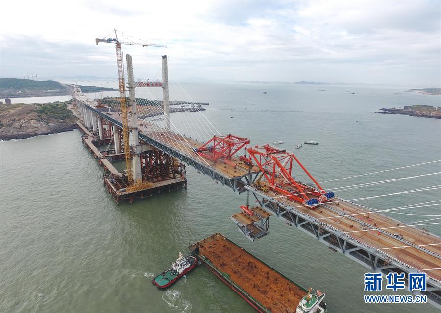 9月21日,平潭海峽公鐵大橋鼓嶼門航道橋的鋼桁梁在吊裝中(無人機拍攝)。9月25日上午,隨著一段長17米、重473噸的鋼桁梁被精確固定到位,總長16.34公里的平潭海峽公鐵大橋合龍貫通。平潭海峽公鐵大橋是福州至平潭鐵路控制性工程,也是“十三五”規(guī)劃中北京至臺灣高鐵的先期工程。大橋起于福州市長樂區(qū),“踏”過四座小島后抵達中國第五大島平潭,上層設計為時速100公里的六車道高速公路,下層為設計時速200公里的高鐵。據(jù)福建福平鐵路公司介紹,大橋計劃2020年正式通車。在六年建設過程中,平潭海峽公鐵大橋所應用研發(fā)的多項技術、裝備創(chuàng)下國內(nèi)外紀錄。新華社記者林善傳攝