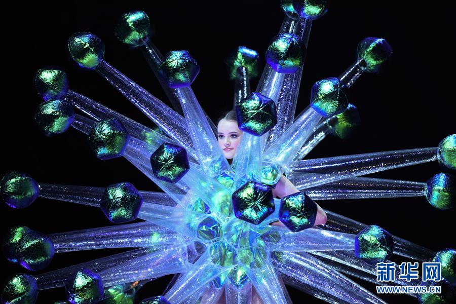 9月26日,在新西蘭首都惠靈頓舉行的世界可穿著藝術大賽年度秀場表演中,模特展示入圍作品。新華社記者郭磊攝