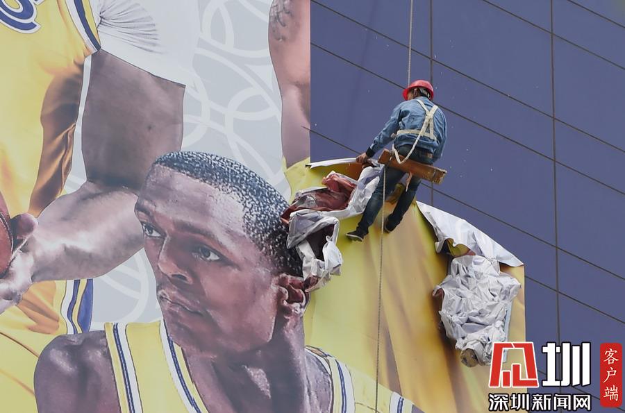 “2019NBA球迷之夜”取消 上海正大廣場外圍巨幅NBA中國賽海報被拆除