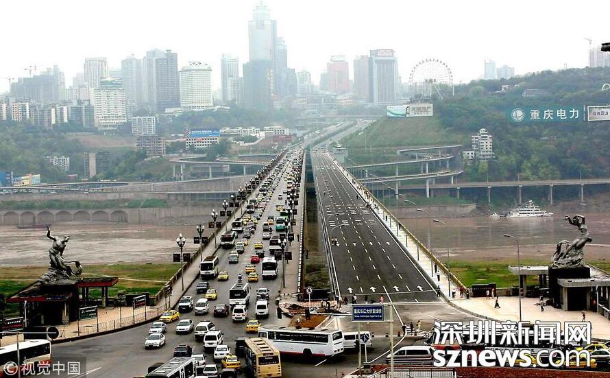 【跨度最大的梁橋——重慶石板坡長江復(fù)線大橋】重慶石板坡長江大橋復(fù)線橋跨徑330米,于2003年12月正式動工,2006年8月28日竣工通車,全長1103.5米,寬19米,為單向四車道,設(shè)計日通行能力8萬輛。