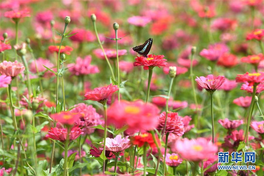 10月9日,一只蝴蝶在四季花海城市公園花叢中。 秋日時(shí)節(jié),位于安徽省合肥市的四季花海城市公園花香四溢,色彩繽紛,成為游客和市民休閑游玩的好去處。 新華社記者 張端 攝