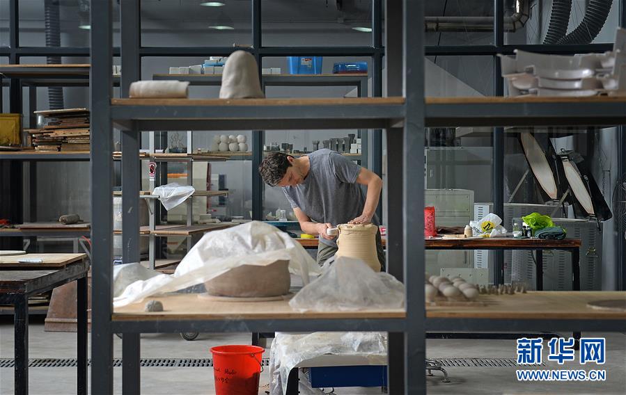 在江西景德鎮(zhèn)陶溪川國(guó)際工作室,一名來(lái)自美國(guó)的藝術(shù)家在制作陶瓷藝術(shù)品(2016年10月20日攝)。新華社記者 萬(wàn)象 攝