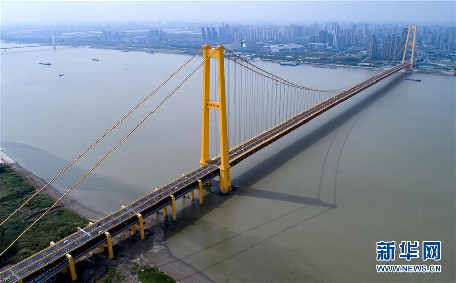 楊泗港大橋建設(shè)創(chuàng)造了多項世界之最:一是主橋跨度達1700米,為世界上跨度最大的雙層懸索橋;二是主橋設(shè)置雙層雙向12車道,是世界上通行能力最大的公路橋梁;三是大橋主纜設(shè)計張力6.5萬噸,采用了世界上強度等級最高的主纜鋼絲;四是大橋設(shè)置機動車道、非機動車道、人行觀光道,集過江交通與觀光于一體,是長江上功能最完備的橋梁。新華社記者熊琦攝
