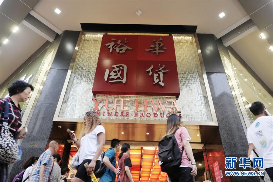 矗立在香港九龍彌敦道的一個紅底金字的大型招牌——裕華國貨,格外引人矚目(9月24日攝)。新華社記者王申攝
