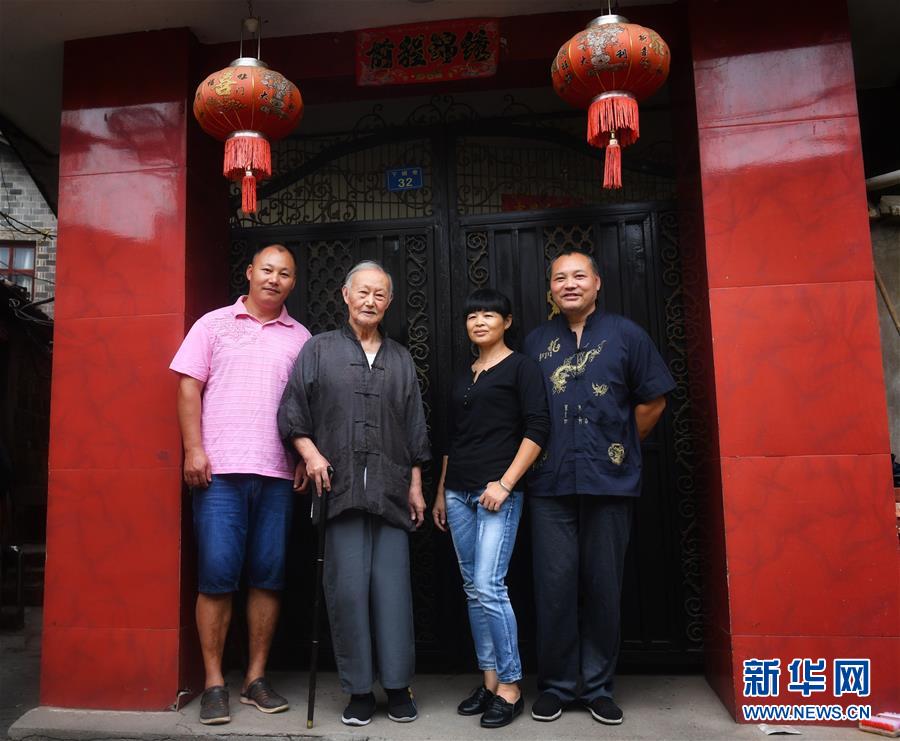 10月12日,丁國(guó)坤(左二)在家門(mén)口和他的徒弟們合影。新華社記者胡晨歡攝