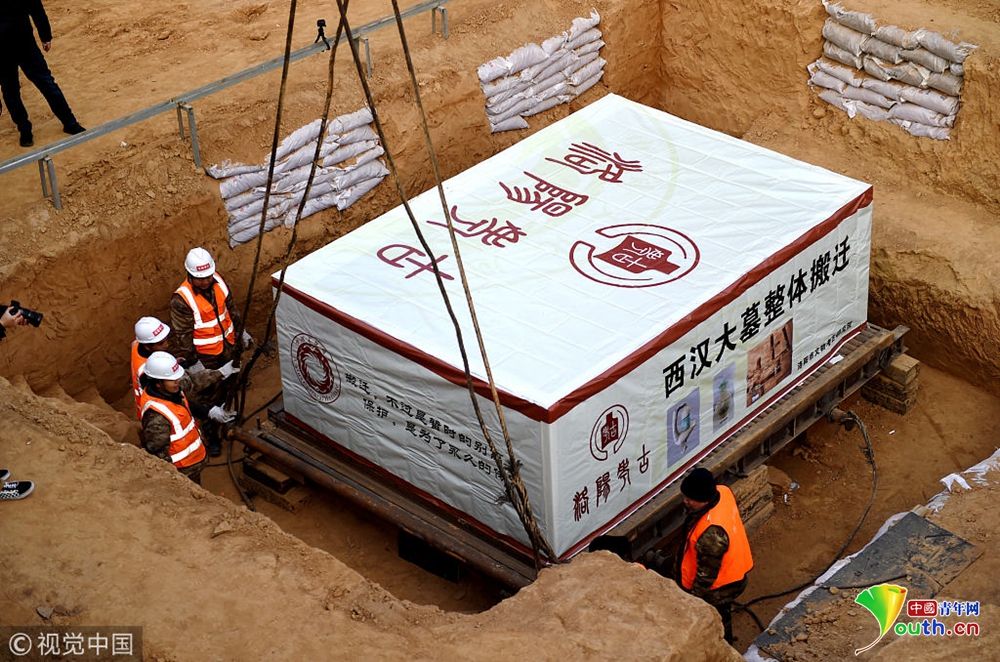 河南洛陽2000年前西漢大墓“打包”搬離鬧市