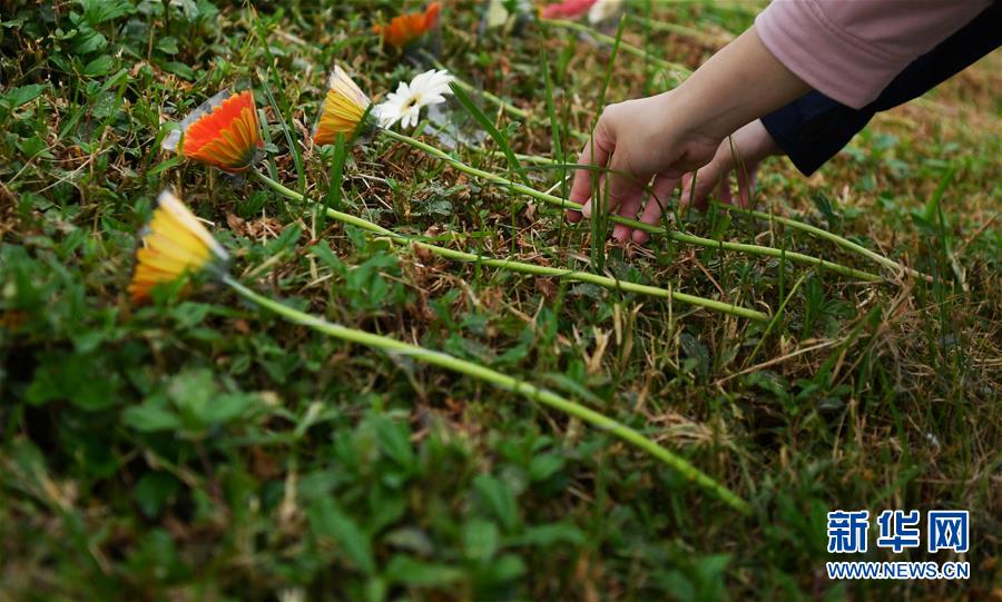 10月19日,參與秋祭活動的民眾在活動現(xiàn)場獻花。  新華社記者 陳斌 攝