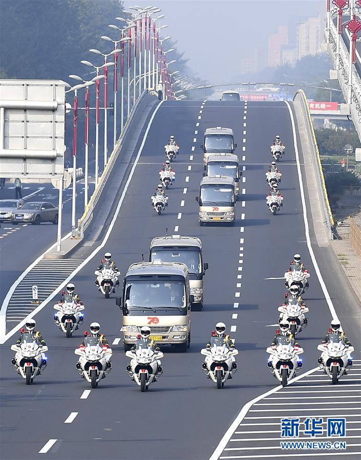 9月29日上午,國家勛章和國家榮譽稱號獲得者乘坐禮賓車從住地出發(fā),在國賓護衛(wèi)隊的護衛(wèi)下,前往人民大會堂參加中華人民共和國國家勛章和國家榮譽稱號頒授儀式。 新華社記者 燕雁 攝