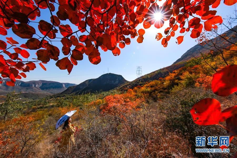 10月24日,游客在河北省武安市賀進(jìn)鎮(zhèn)后臨河村觀賞紅葉。金秋時(shí)節(jié),位于太行山區(qū)的河北省武安市賀進(jìn)鎮(zhèn)后臨河村的紅葉進(jìn)入觀賞佳期。新華社記者王曉攝