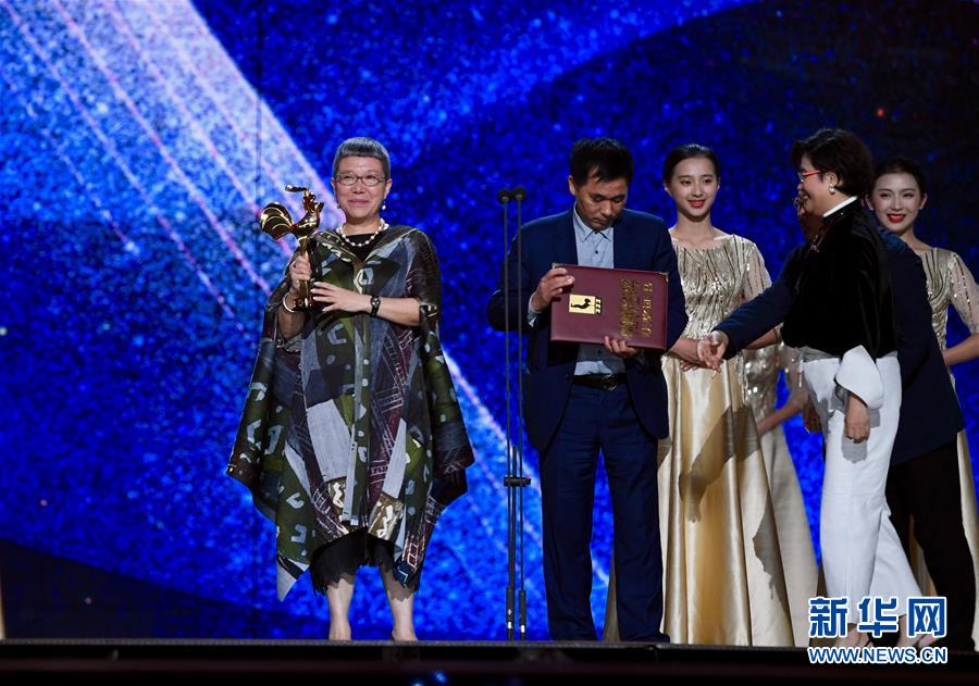 11月23日,最佳中小成本故事片獎(jiǎng)獲獎(jiǎng)電影《紅花綠葉》導(dǎo)演劉苗苗(左一)出席頒獎(jiǎng)典禮。 當(dāng)日,第32屆中國(guó)電影金雞獎(jiǎng)?lì)C獎(jiǎng)典禮在福建廈門舉行。 新華社記者姜克紅攝