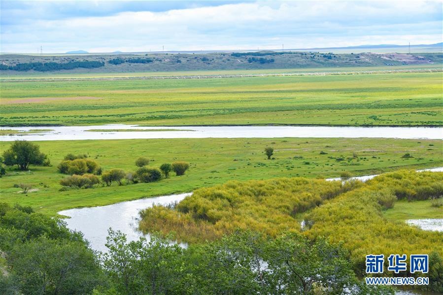 8月26日無人機拍攝的伊敏河。伊敏河流經(jīng)呼倫貝爾草原。新華社記者彭源攝