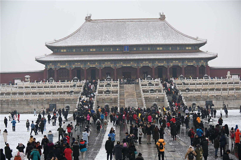 2019年11月30日,北京,初雪過后,故宮美景如畫,吸引大批游客前來“打卡”。