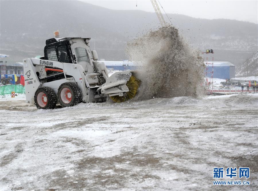 圖為一臺(tái)掃雪車在國(guó)家跳臺(tái)滑雪中心工作(攝于12月10日)。新華社記者畢明明攝