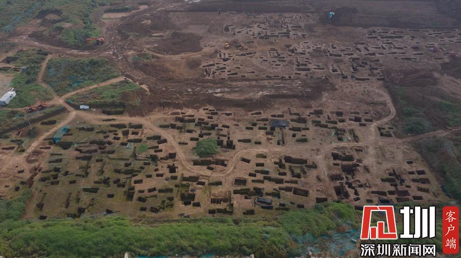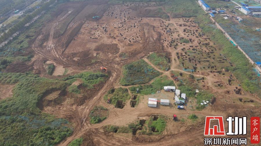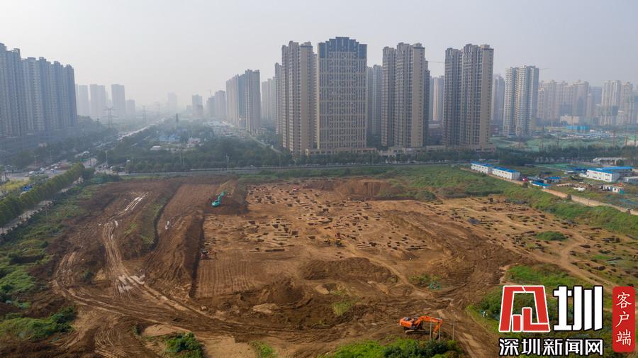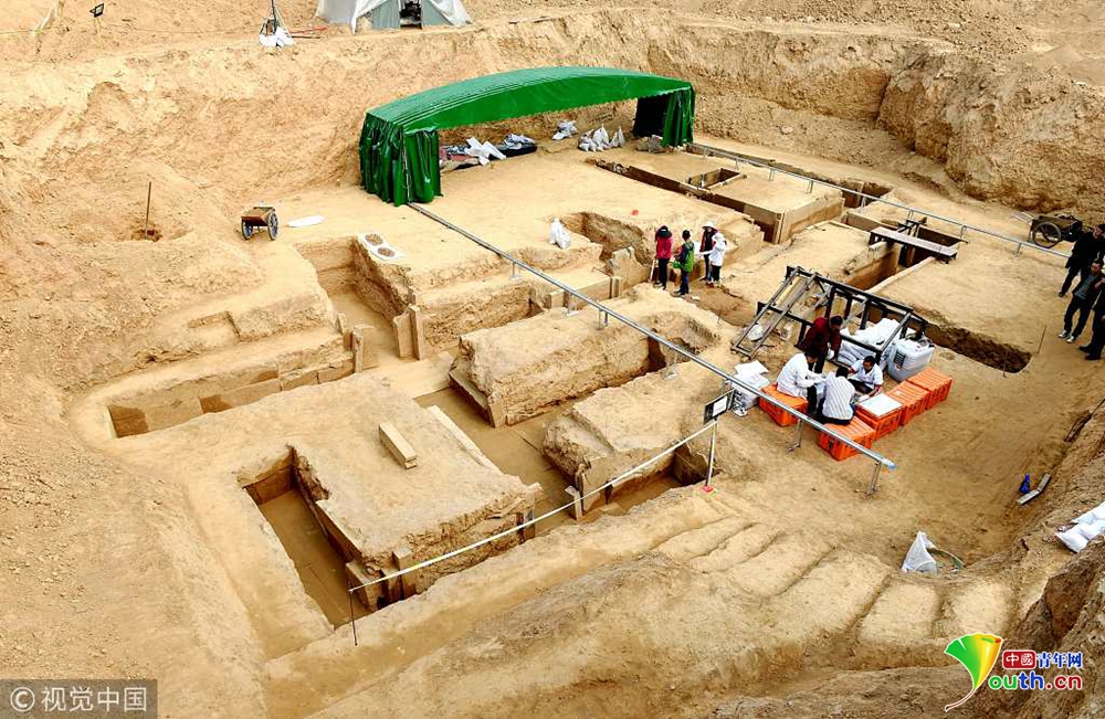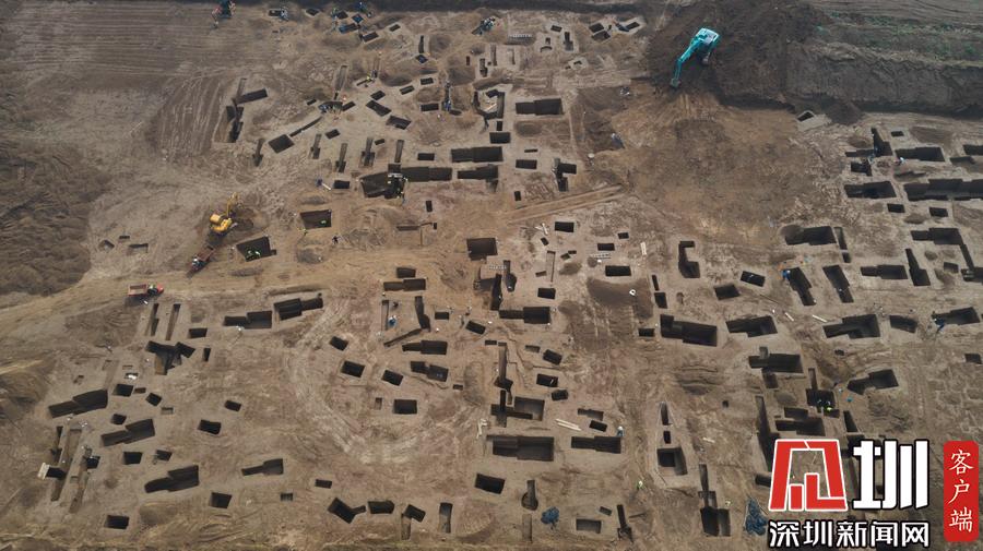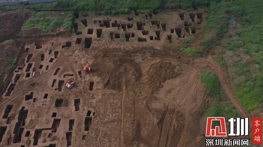 西安宜家工地挖出古墓空中俯瞰數(shù)百墓坑密密麻麻