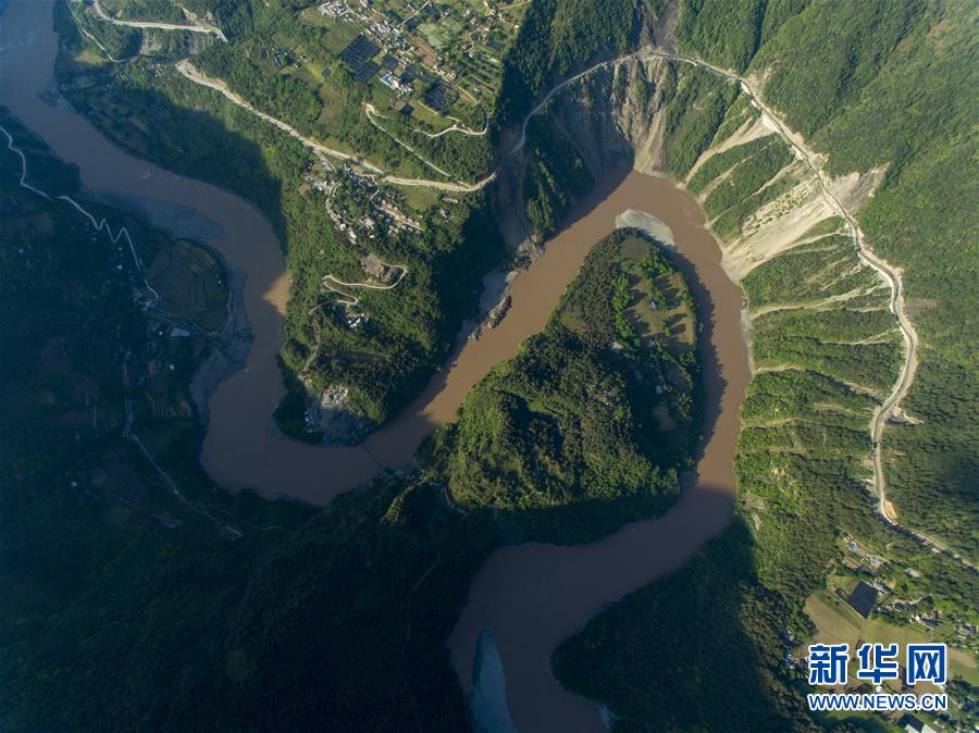 這是4月27日在云南省貢山獨龍族怒族自治縣丙中洛鎮(zhèn)拍攝的“怒江第一灣”(無人機拍攝)。新華社記者江文耀攝