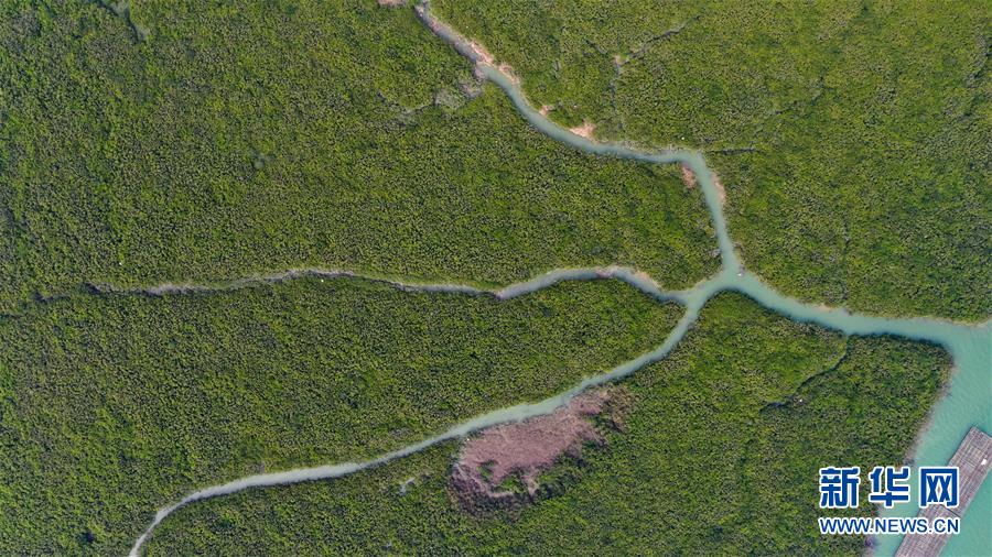12月21日無人機(jī)拍攝的廣西合浦縣黨江鎮(zhèn)更螺圍出海口一景。冬日,廣西廉州灣海域風(fēng)光別致。新華社記者張愛林?jǐn)z