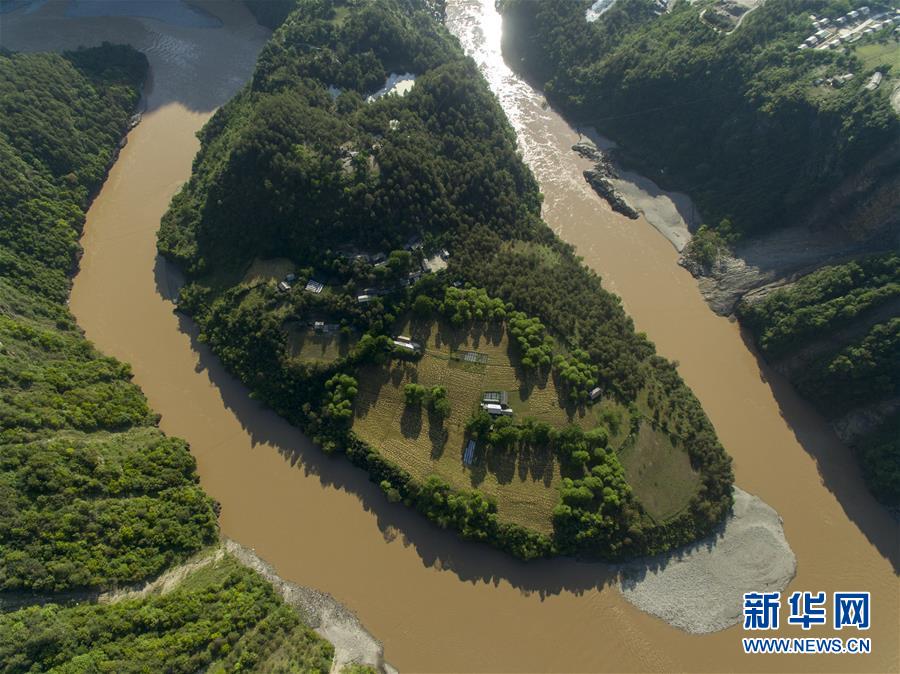 這是4月27日在云南省貢山獨(dú)龍族怒族自治縣丙中洛鎮(zhèn)拍攝的“怒江第一灣”(無人機(jī)拍攝)。新華社記者江文耀攝