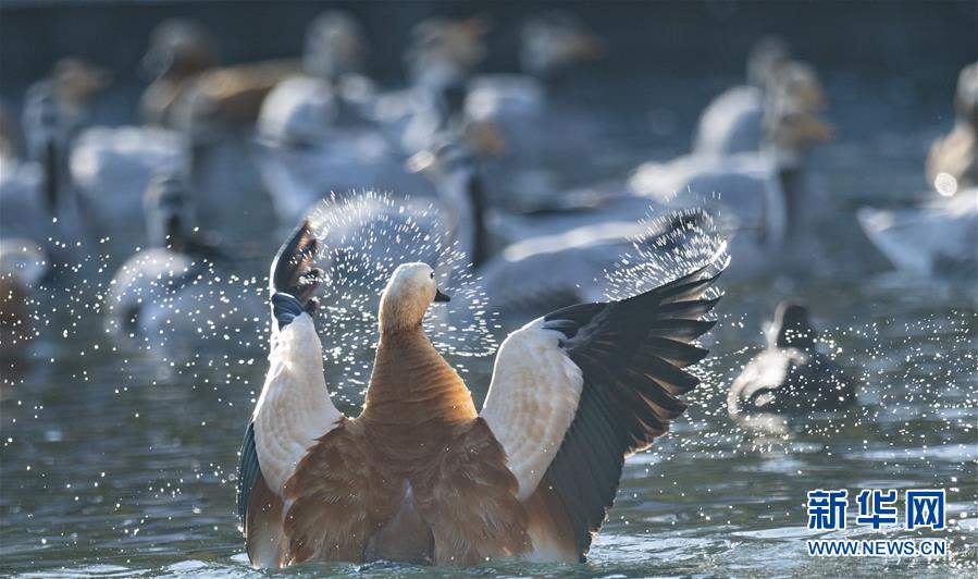 11月21日,候鳥在拉薩龍王潭公園水中嬉戲。新華社記者普布扎西攝