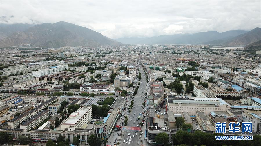 8月10日無人機拍攝的拉薩城市一景。新華社記者王益亮攝