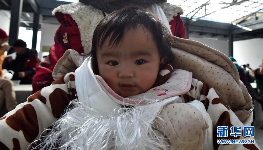 12月23日,在西藏那曲市雙湖縣出生的7個月大的娟安達瓦在母親懷里。新華社記者覺果攝