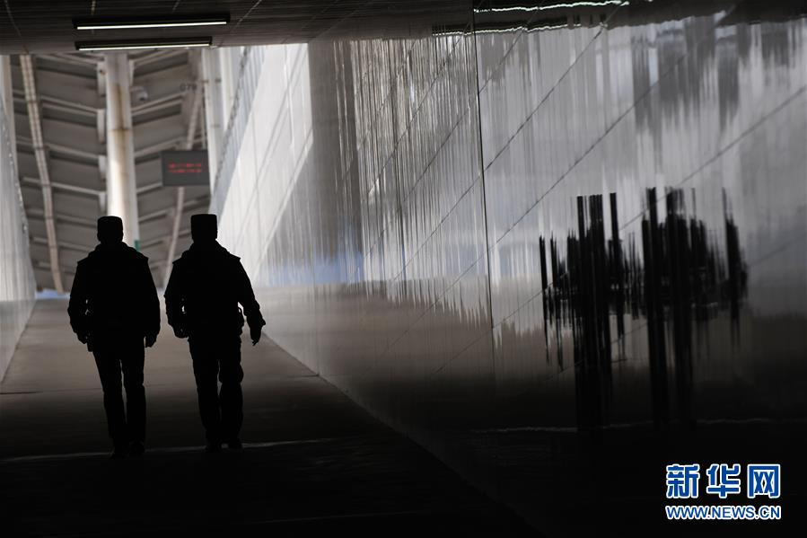 金寨火車站派出所民警鄧成成(右)與王晨旭在站內執(zhí)勤(12月19日攝)。新華社記者張端攝